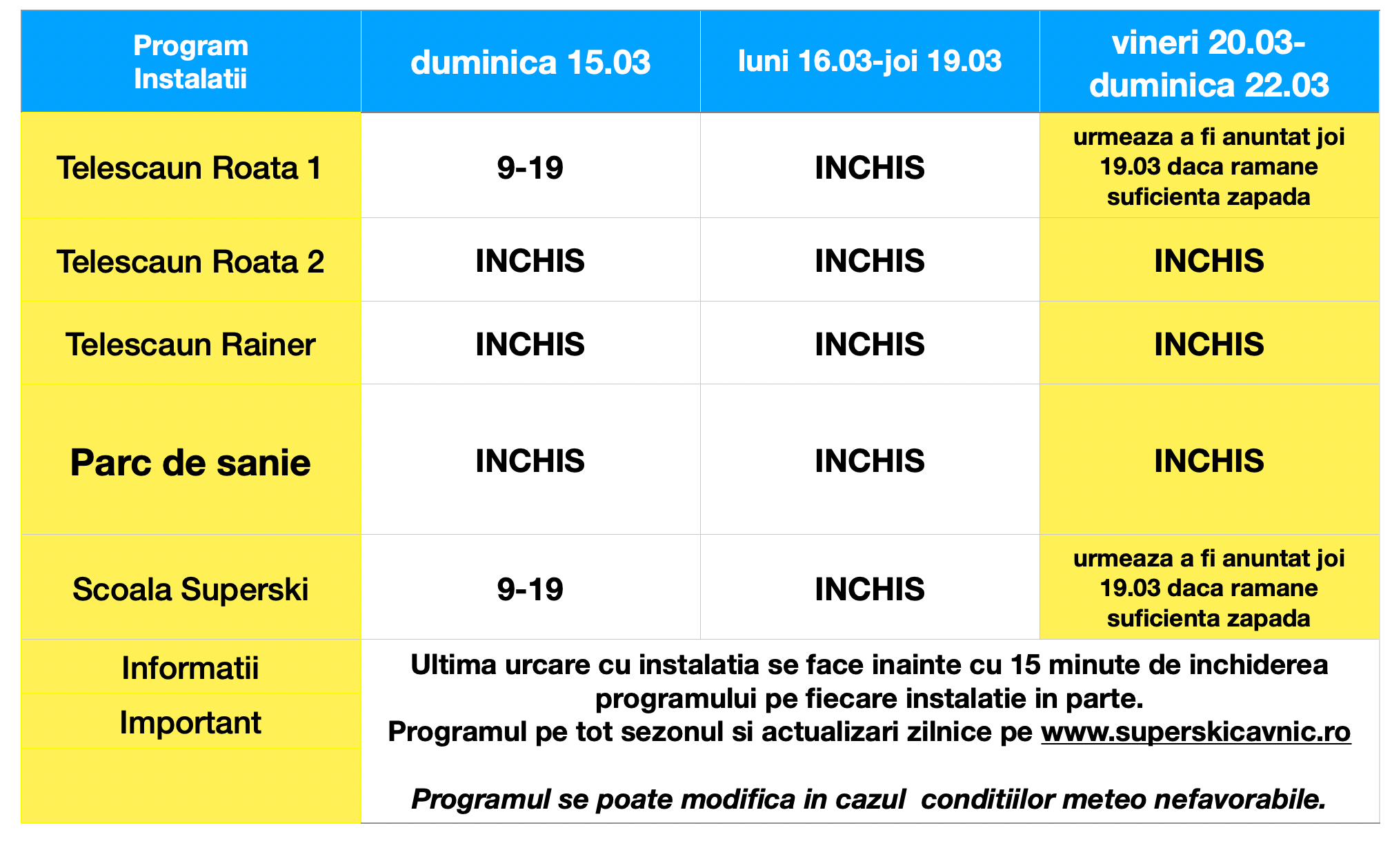 20.03-22.03 redeschidem daca avem strat suficient de zapada